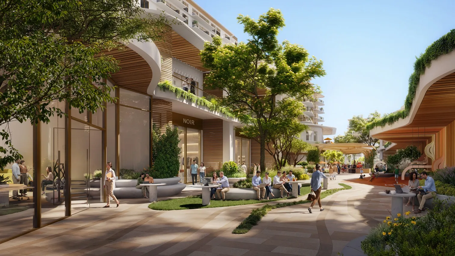 Amenities are thoughtfully integrated to support wellbeing, social interaction, and daily rhythm. The community features landscaped public realms with plazas, gathering pockets, and flexible spaces designed for events, pop-ups, and casual encounters. Residents benefit from walkable green routes, access to a landmark public park, nearby beach clubs, hotels, and dining destinations, as well as a curated retail offering that supports both everyday convenience and lifestyle experiences. Together, these amenities create a dynamic environment where leisure, culture, and community life flow naturally throughout the day.