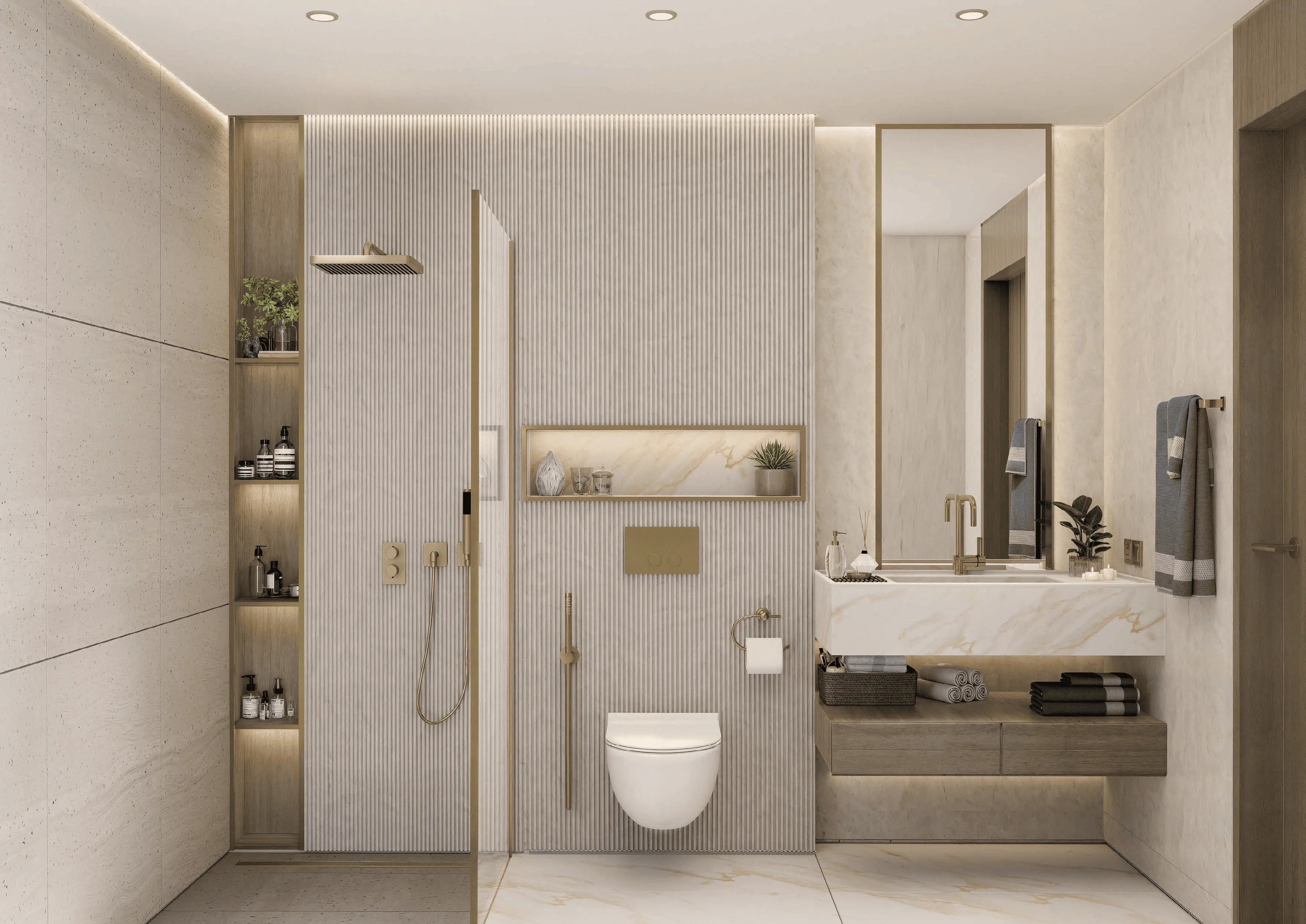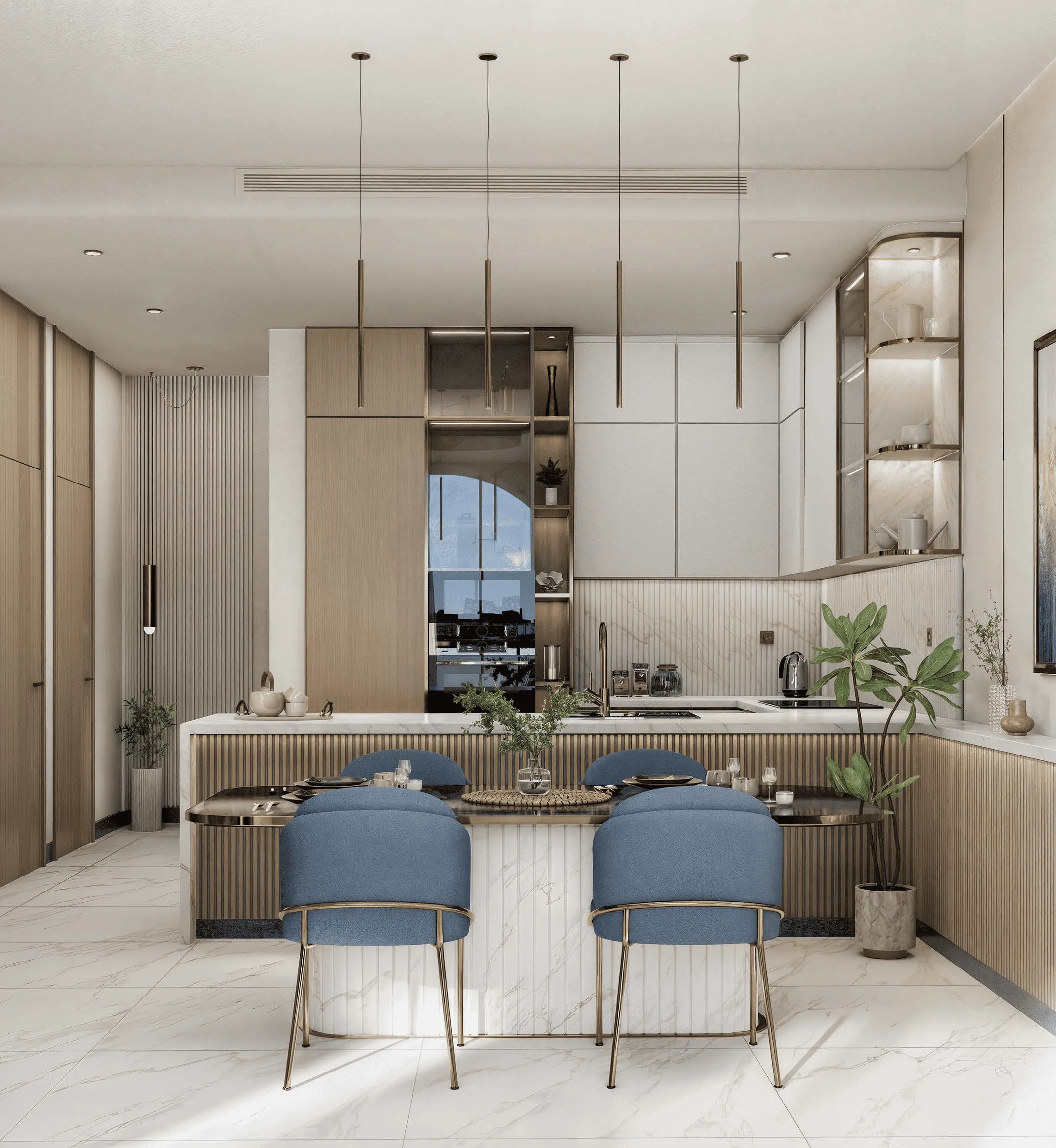 All residences at Liora are fully furnished with carefully selected furniture and elegant interior details. The kitchens are beautifully designed, combining functionality with refined finishes, while high-quality materials, marble surfaces, warm lighting, and subtle golden accents create a sense of understated luxury throughout the homes. Every detail is crafted to deliver a polished, move-in-ready living space that feels both stylish and welcoming.