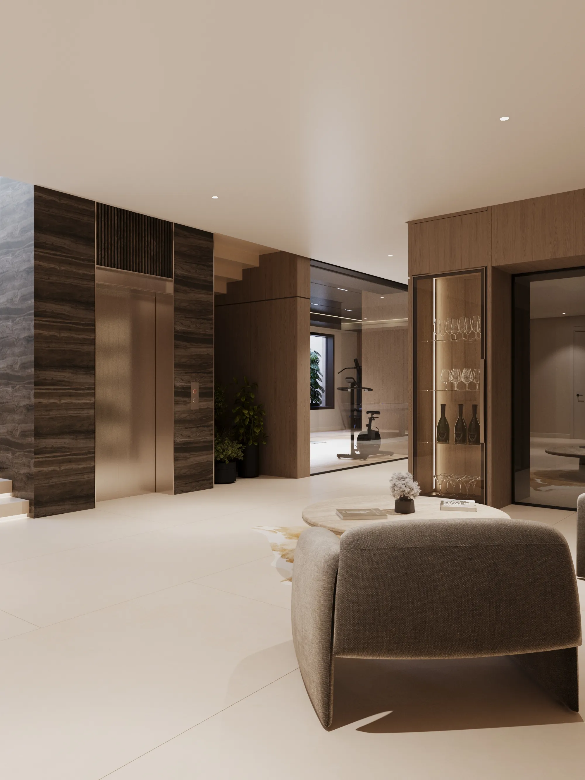Lifestyle amenities are thoughtfully incorporated throughout the villa to support comfort, wellness, and everyday ease. Landscaped gardens with curated greenery frame the outdoor spaces, while architectural lighting enhances the ambiance after sunset. Wellness features include dedicated spa and fitness areas designed to deliver a private retreat experience, complemented by leisure-focused pool areas and refined outdoor living zones. Vertical mobility within the home is supported by a private elevator, ensuring effortless movement across all levels. Smart home systems further enhance convenience, allowing residents to control lighting, climate, access, and entertainment through integrated automation.