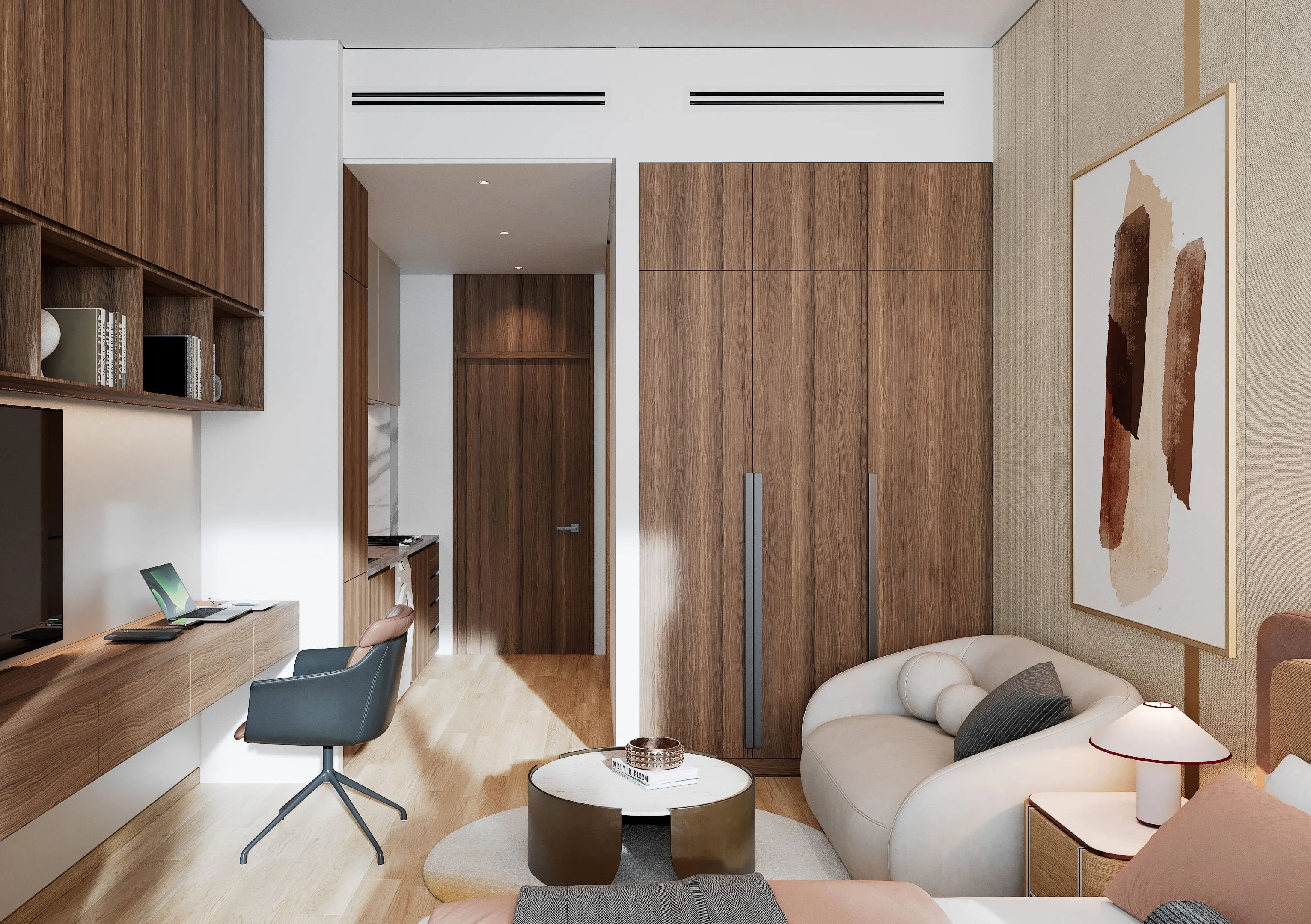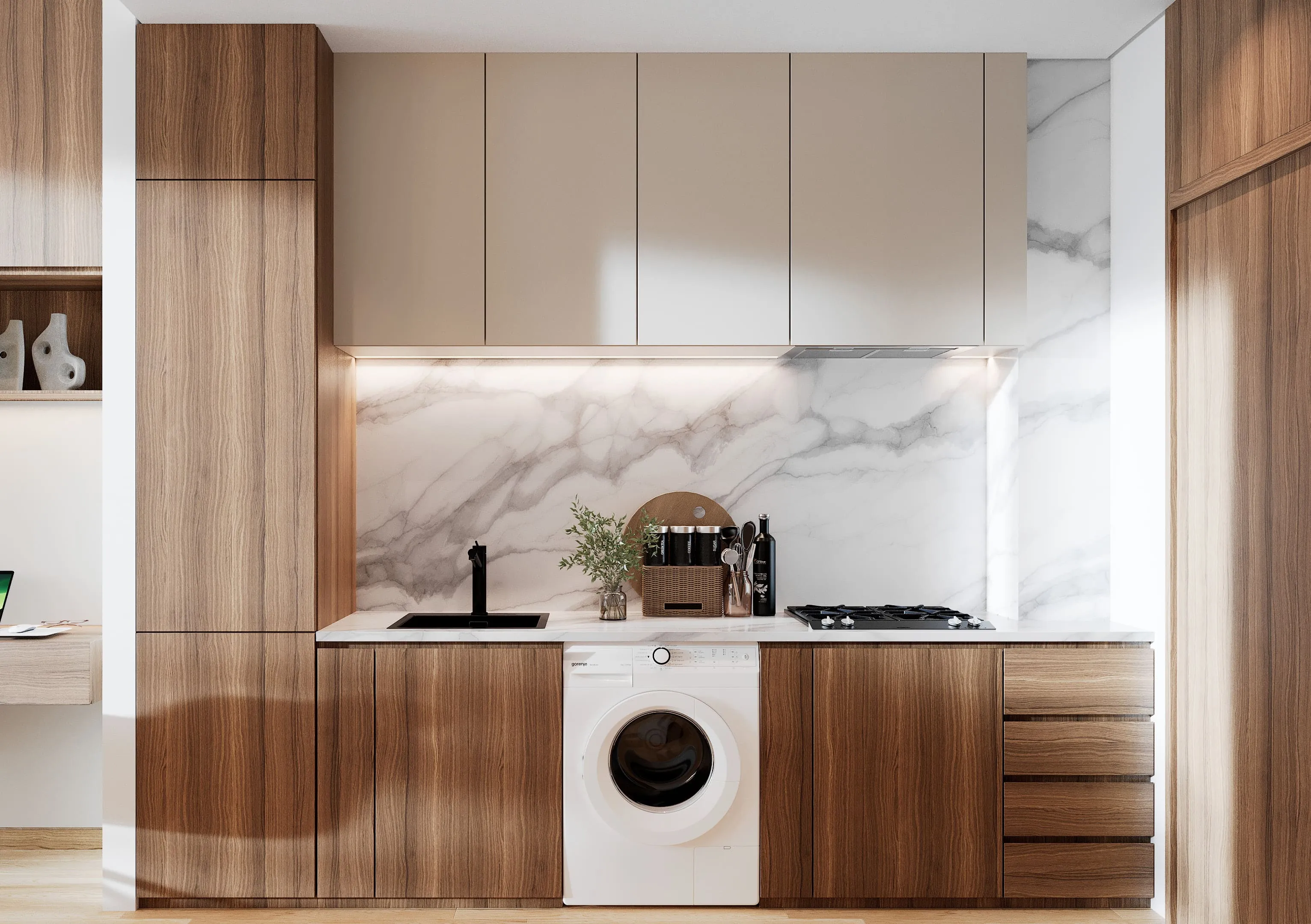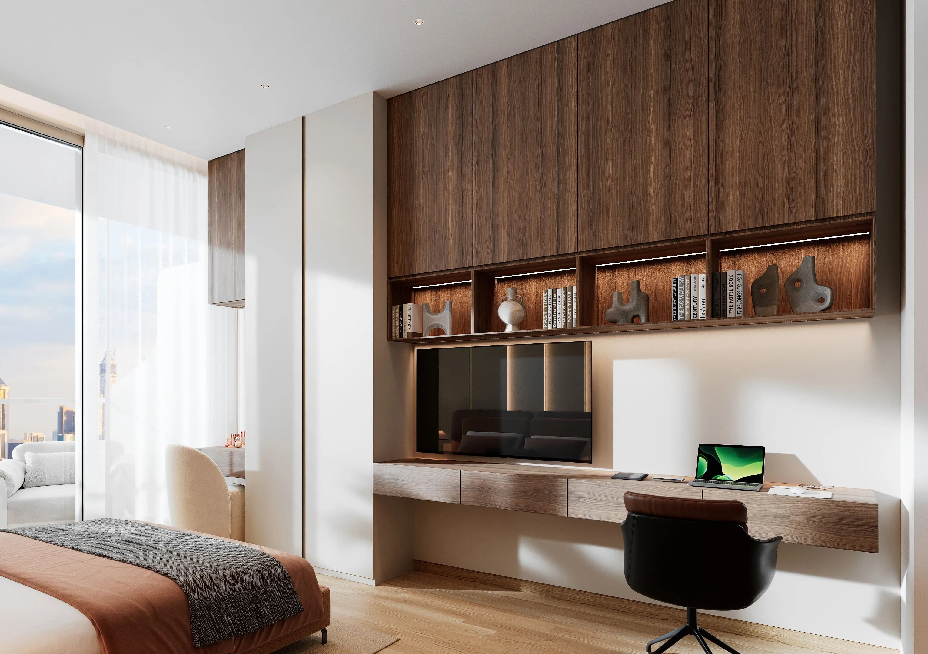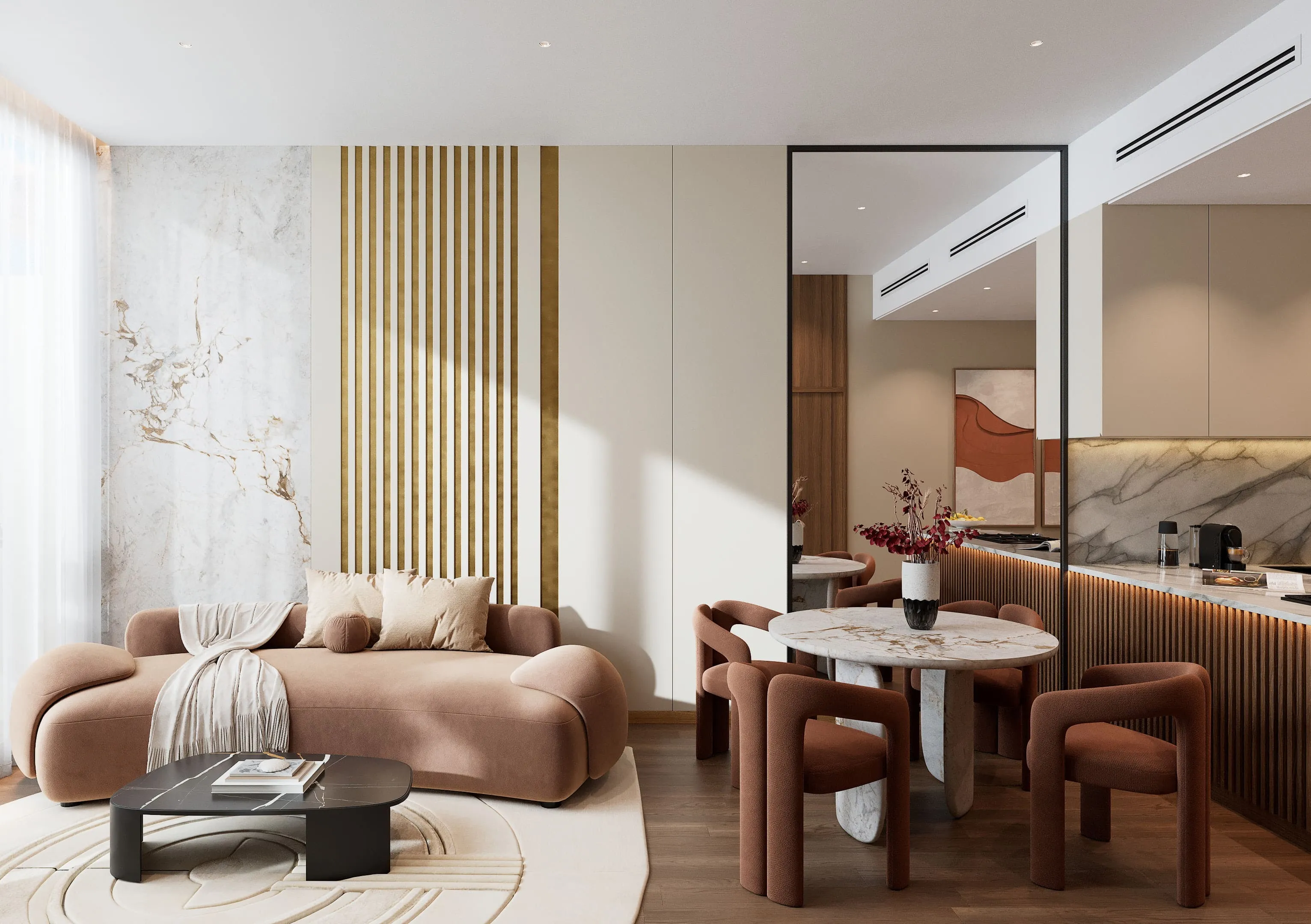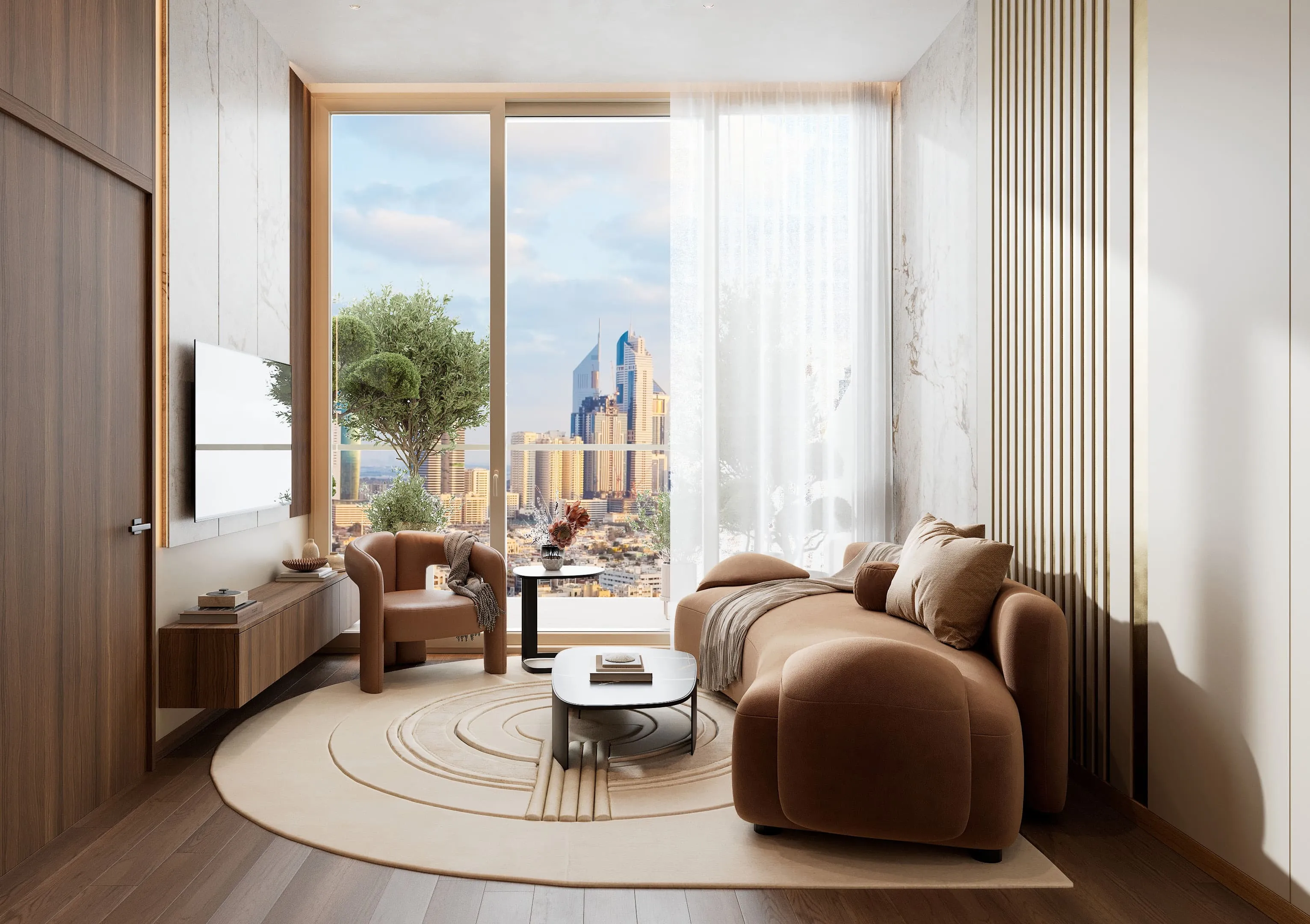 Each apartment is fully furnished, allowing residents to move in with ease and comfort. The interiors reflect a warm Mediterranean aesthetic, with high-quality materials, elegant finishes, and carefully selected textures that create a cozy yet sophisticated ambiance. Modern kitchens come fully fitted with premium cabinetry and appliances, while the overall design blends functionality with timeless style to offer a truly refined living experience.
