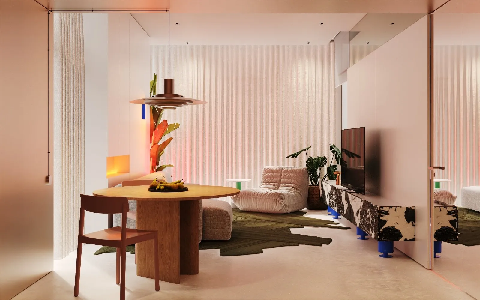 Within the community, thoughtfully curated amenities encourage connection, productivity, and wellbeing. Signature spaces include a modern lobby, a lounge-style living room, coworking zones, a fully equipped gym, a yoga studio, and a terrace swimming pool with resort-inspired ambiance. A terrace garden and a healthy food restaurant further elevate the experience, offering both tranquility and social energy. Together, these elements create a lifestyle environment that balances comfort with bold design, appealing to those who value expressive and contemporary urban living.